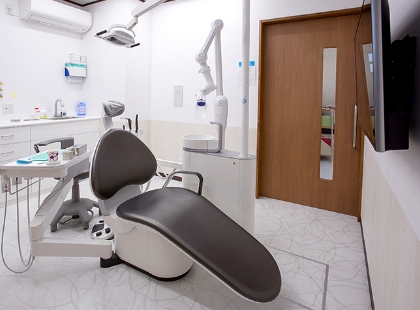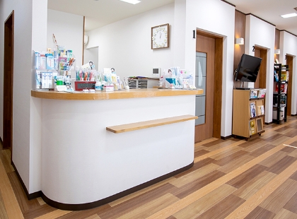 一般歯科診療のほかに予防治療、歯周病治療、小児歯科、口腔外科、歯の根の治療、入れ歯、インプラント治療など幅広く診療が行われています。すべての方が安心して通える歯科医院を目指し、入り口にはスロープを設けており、靴を履いたまま診療台に向かうことができるので、足が不自由な方でも心配なく通える歯科医院です。