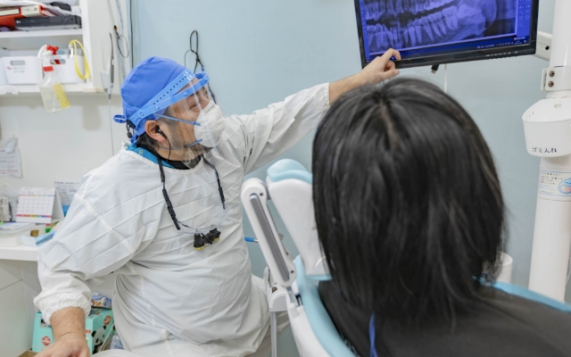 患者様ご自身が歯への興味を持っていただけるよう、モニターや模型を活用して、患者様にも目で見て分かりやすい説明を行っています。単に説明をするのではなく、モチベーションを上げるために最初にゴールまでの道筋をお伝えし、治療の過程を写真に収めて見せることでメンテナンスが楽しくなります。治療前には、お口のクリーニングを基本的に行っており、治療後には最短でも3ヶ月に1回は定期検診をおすすめする事で、早期発見・早期治療と、お口全体の健康を維持する事に力を入れています。